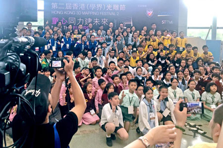 Hong Kong 3D Mapping Festival 2 was held in 21-22 April 2018 at the Cyberport Plaza. “Enriched IT Programme” Partner School, Cheung Sha Wan Catholic Secondary School, is one of the organisers (Note). In the festival, 13 primary and secondary schools showcased their students' works on creativity and artistic sense by 3D projection mapping with theme on “Map the Future”.