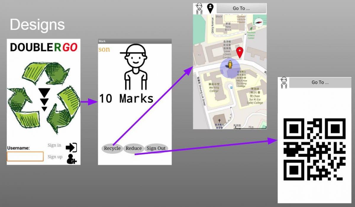 “Double R Go” is a mobile application about household waste reduction. With the support of GPS and QR Code technologies, it can rate the environmental friendliness of users'daily life activities, ultimately achieving the goal of reducing household waste and building the habit of recycling. Students built the application with MIT App Inventor program after several months of development.