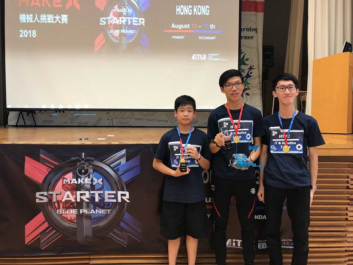 Enriched IT Class students Hin Pok Wong and Chung Wing Kwong of The Y.W.C.A. Hioe Tjo Yoeng College were crowned Champion, the Best Design Award and Gold Award (completed three tasks or above) in the AiTLE “MakeX Robotics Competition 2018”.