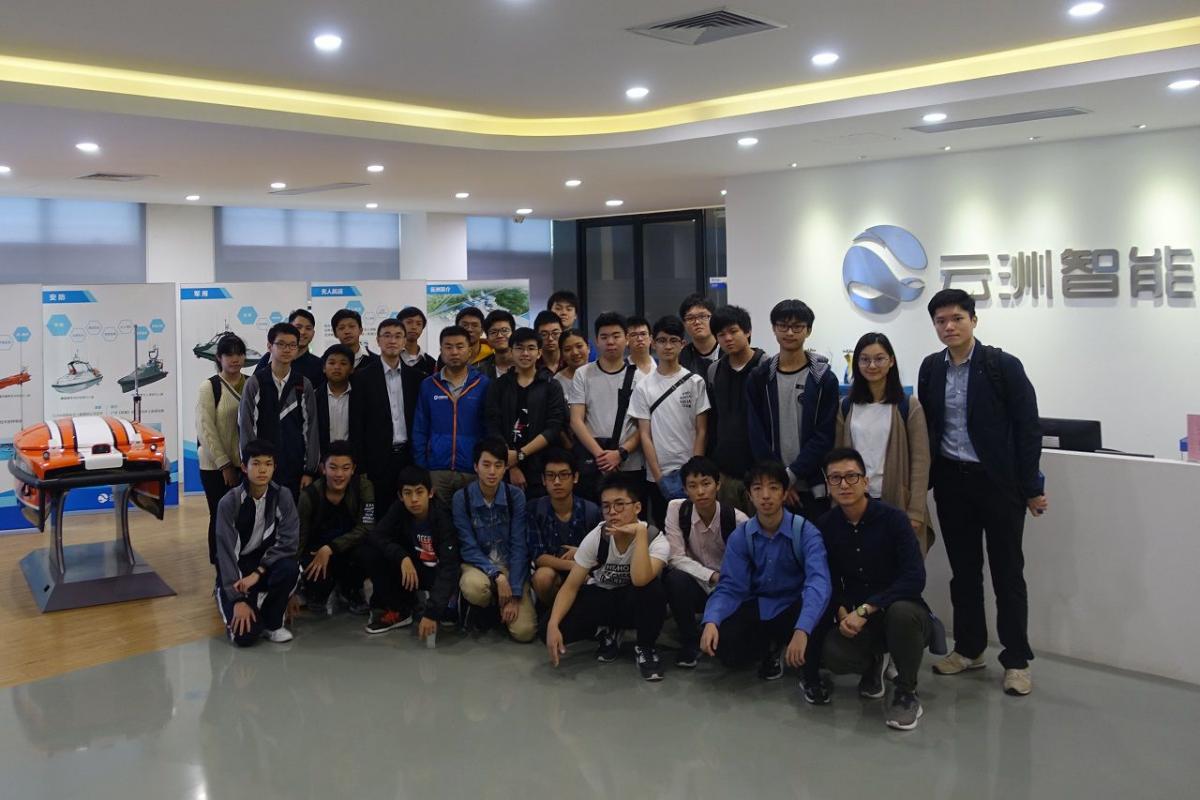 With the support of the Hong Kong University of Science and Technology, around 30 Enriched IT Class teachers and students visited the Zhuhai Yunzhou Intelligence Technology Ltd. (Yunzhou-Tech) and the Xiangshan Marine Scientific & Technological Port (Xiangshan Port), which was still under construction, in Xiangzhou District, Zhuhai City via the Hong Kong–Zhuhai–Macao Bridge on 13 Apr 2019 under the arrangement of the Enriched IT Programme in Secondary Schools. Yunzhou-Tech is the first enterprise in China dedicated to the research and development and production of intelligent unmanned surface vessels (unmanned vessels), and was co-founded in 2010 by Mr ZHANG Yunfei and Mr CHENG Liang who are graduates of the Master of Science program in Mechanical Engineering at the Hong Kong University of Science and Technology. Xiangshan Port is the first industrial park project in China with main business on intelligent unmanned vessels of the marine equipment industry. Yunzhou-Tech is the lead investor of the park which is planned to officially open in 2019.