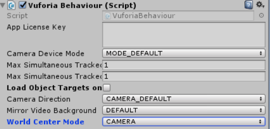 7. Left ARCamera, select World Center Mode for Camera (左方 ARCamera,選取 World Center Mode為 Camera)