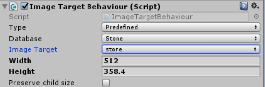 4. At lower left Asset -> Prefabs-> Image Target drag to the left, press Image Target. At the right Inspector Select Database (Target name)