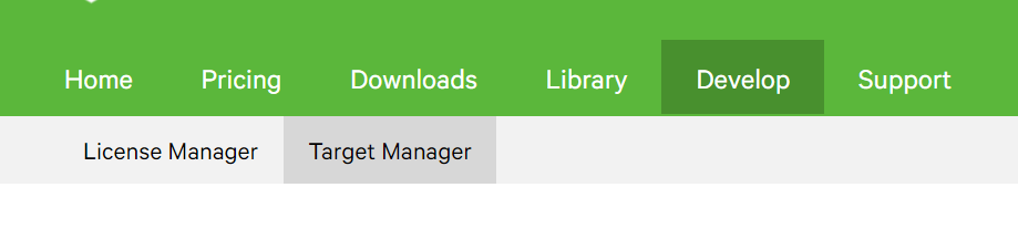 1. Select Develop-> Target Manger at https://developer.vuforia.com/ (到 https://developer.vuforia.com/ 選取 Develop->Target Manger)